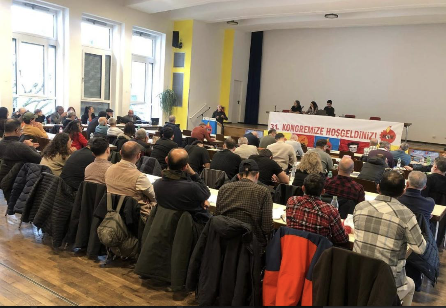 Afterwards, the activists paid a solidarity visit to the 31st Congress of ADHK, held at the Haus der Jugend hall, demonstrating revolutionary solidarity.